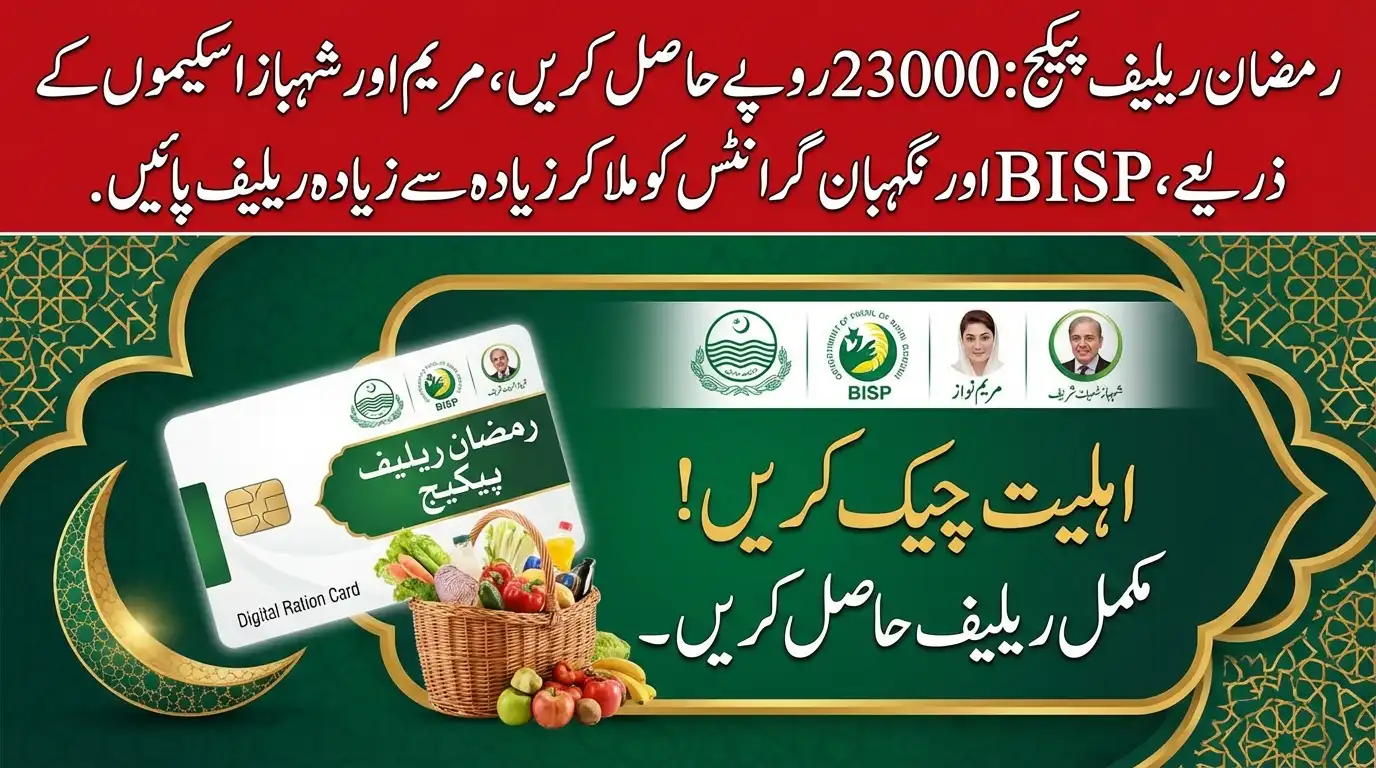 The Government of Pakistan has unveiled a massive joint strategy, allowing eligible families to avail a total Ramadan Relief Package Rs23000 through the combined initiatives of Chief Minister Maryam Nawaz and Prime Minister Shahbaz Sharif. In a bid to combat inflation during the holy month, the federal and provincial governments have synchronized their databases. This ensures that a deserving household can simultaneously receive the BISP Kafalat payment and the Punjab Nigehban cash grant, totaling approximately Rs. 23,000 in financial support.